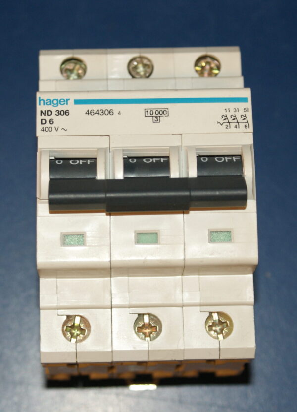 Hager MCB 6A Type D Triple Pole Circuit Breaker ND306 464306