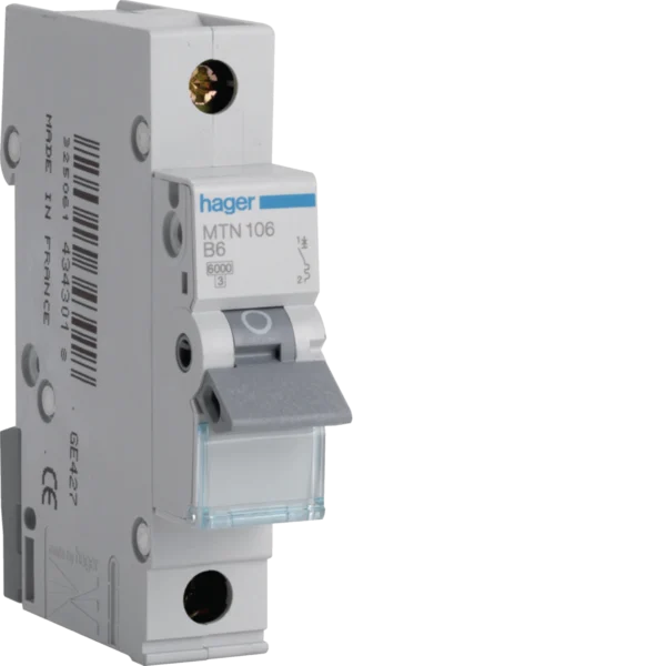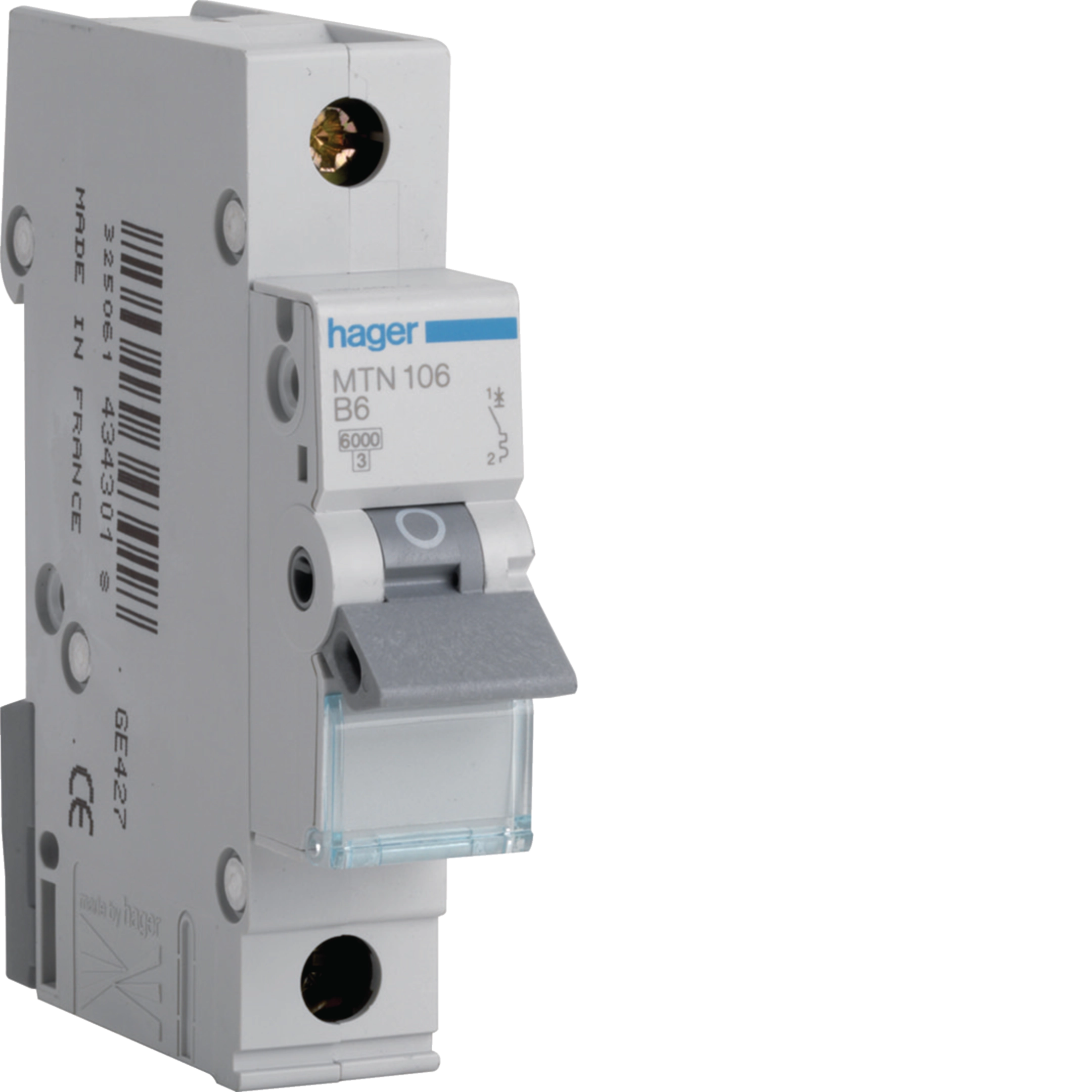 Hager MCB 6A Type B Single Pole Circuit Breaker MTN106 6kA