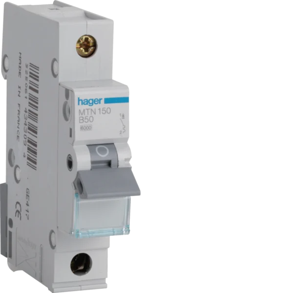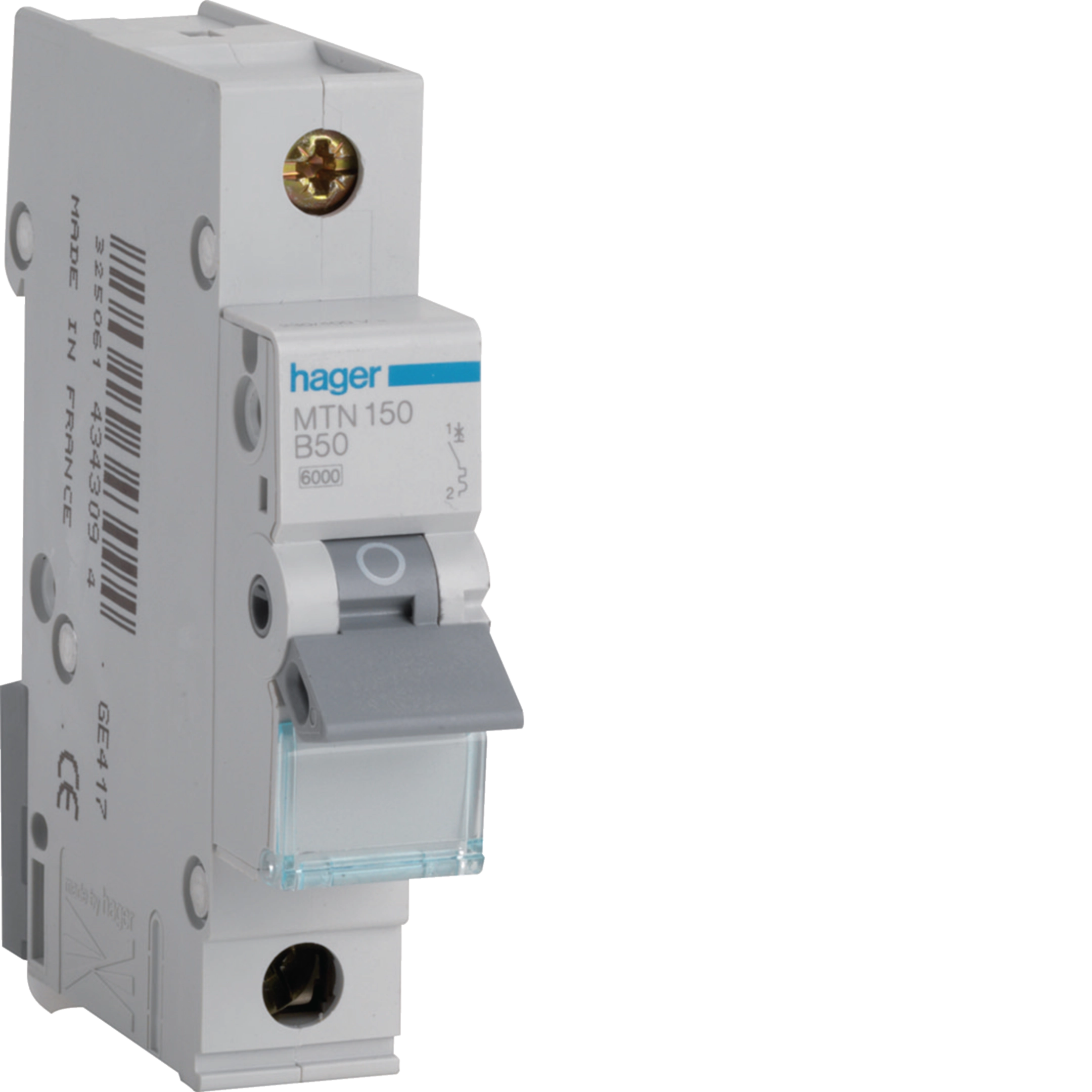 Hager MCB 50A Type B Single Pole Circuit Breaker MTN150 6kA
