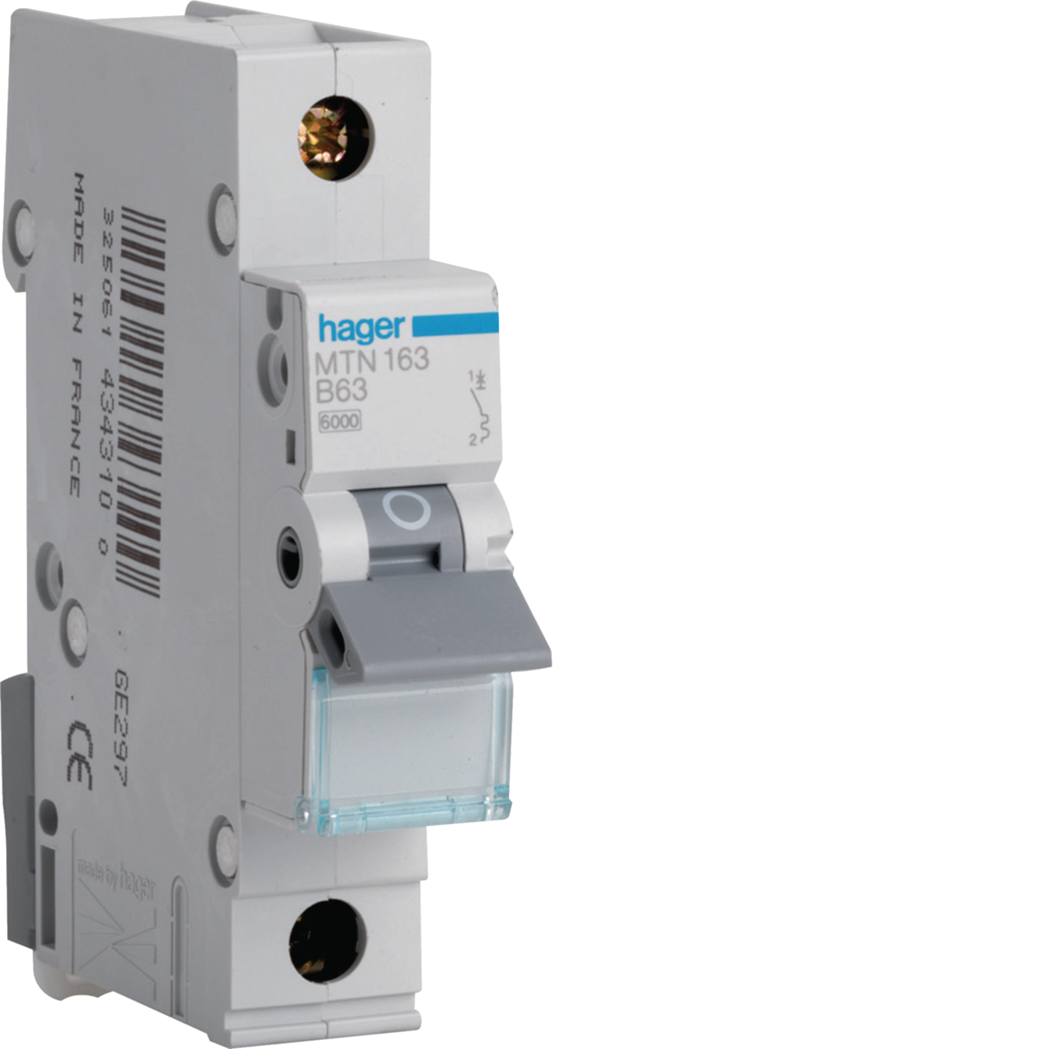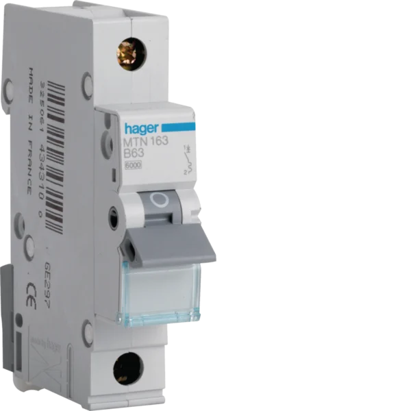 Hager MCB 63A Type B Single Pole Circuit Breaker MTN163 6kA